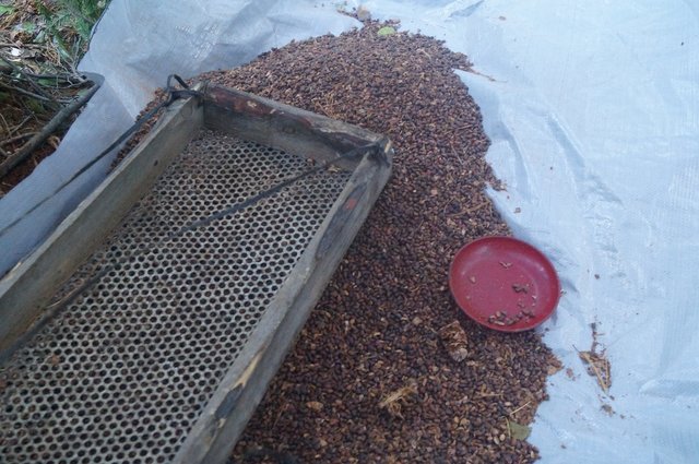 - Очистка водой. Если рядом есть водоем с медленным течением или даже со стоячей водой, опытные сборщики используют его. На дно стелют пленку, придавливая камнями, и высыпают на нее собранные семена. Мусор и шелуха всплывают кверху и уносятся течением, а плоды остаются внизу.